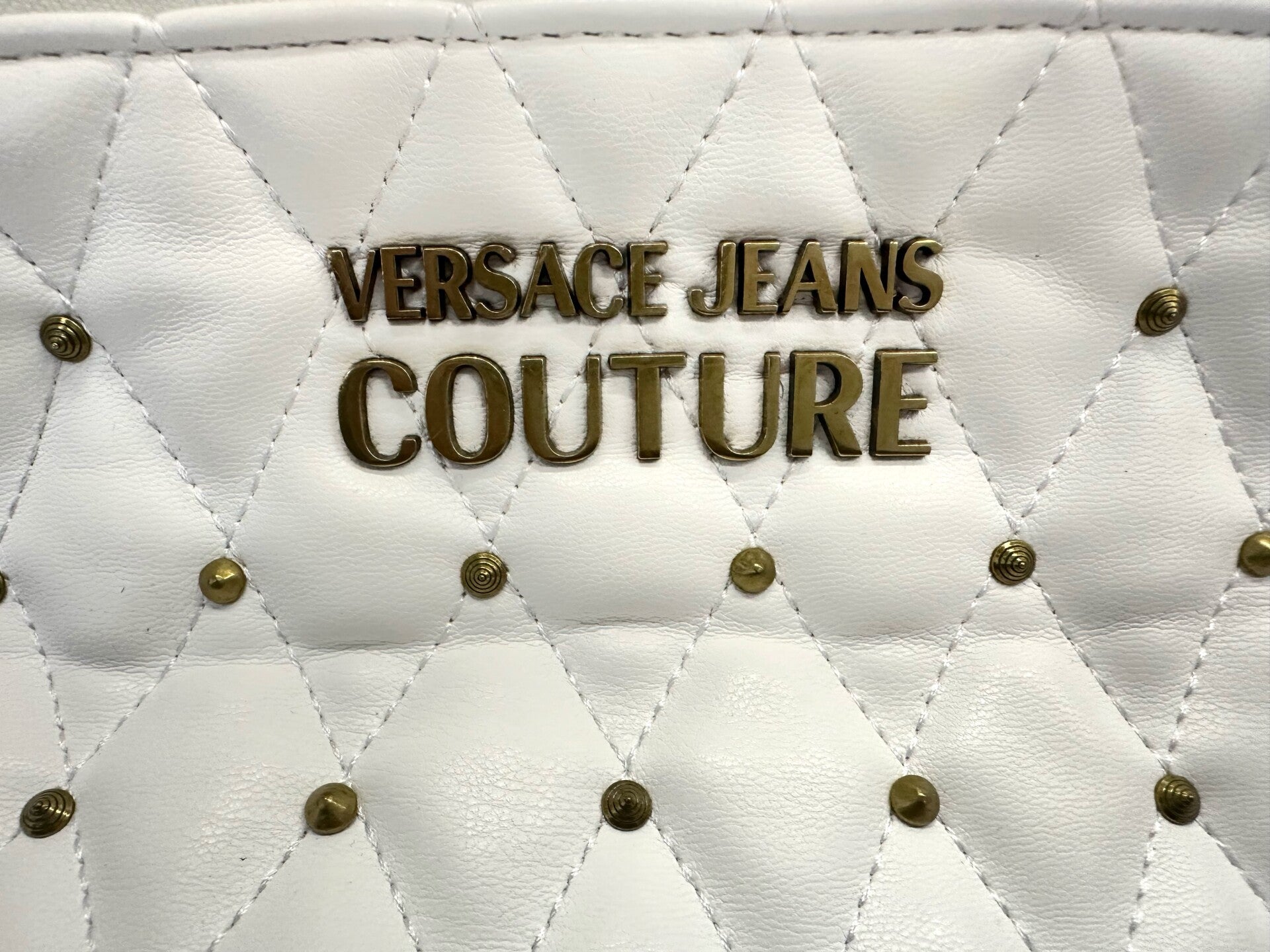 weisses Kunstleder mit goldenen kleinen runden spitzigen Nieten