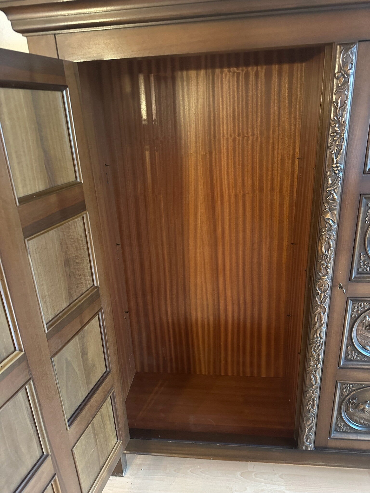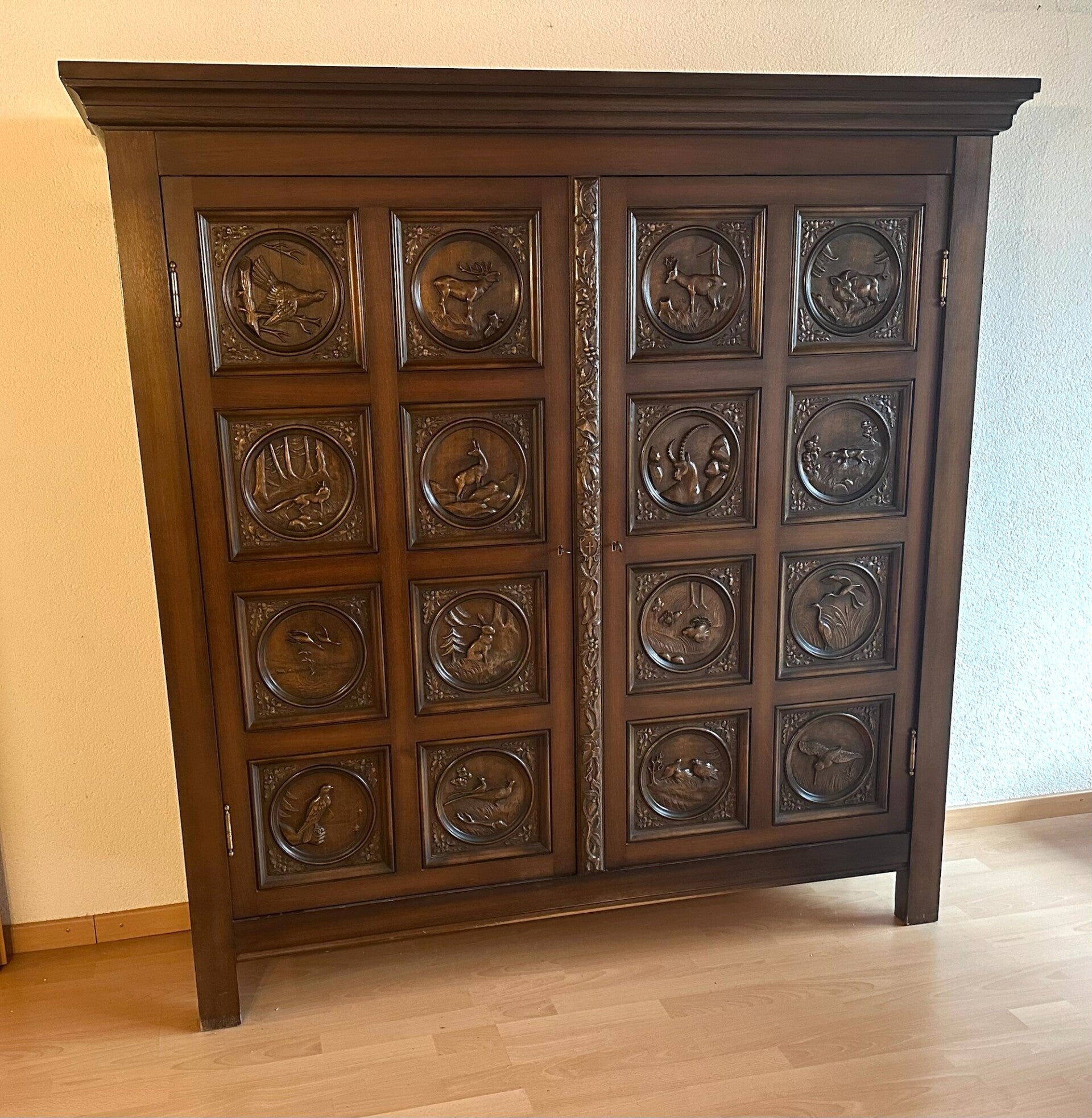 schöner antiker Jagd Schrank aus Nussbaum