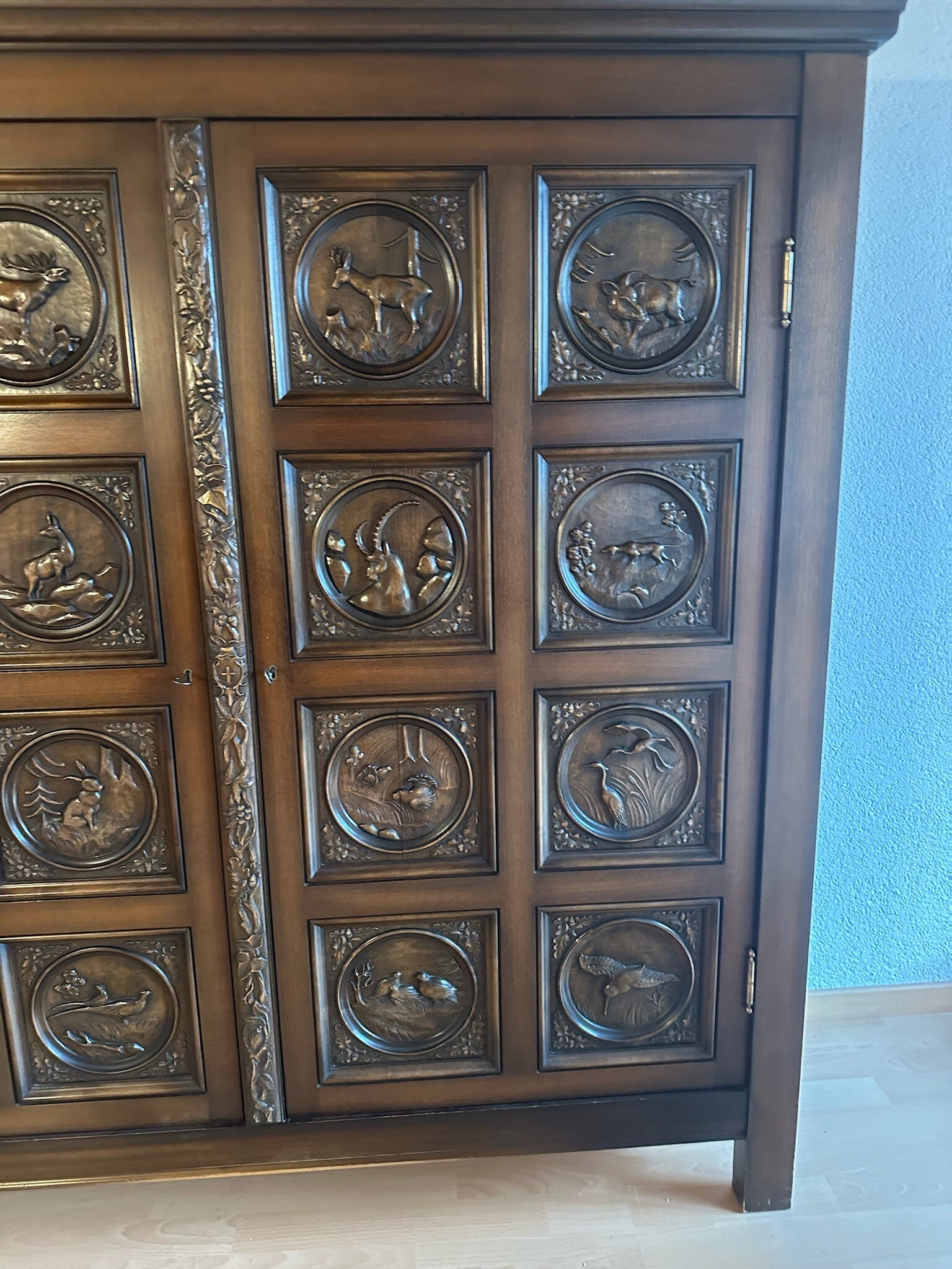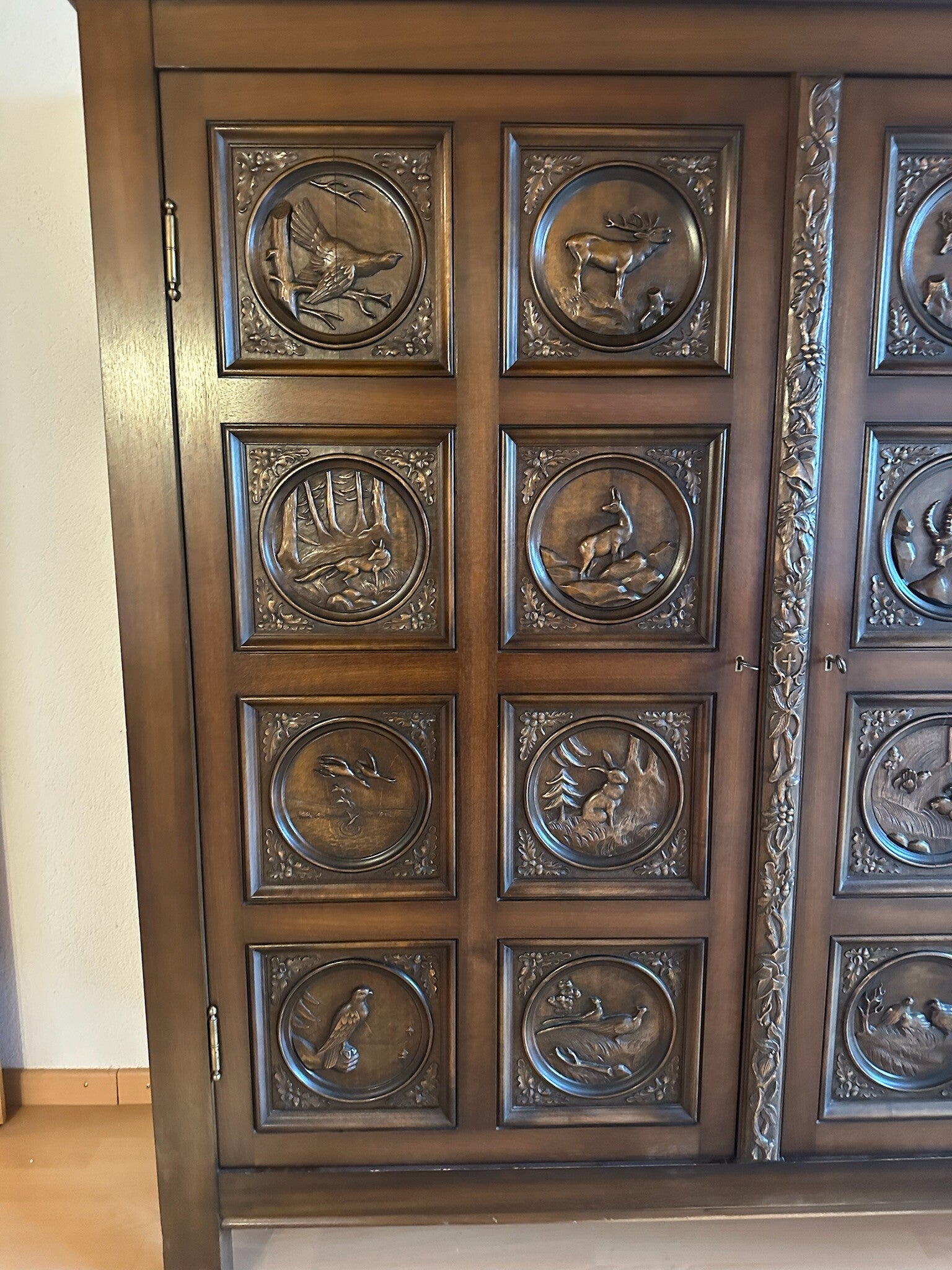 mit Verzierungen zum Teil verschiedene Tiere an Türen